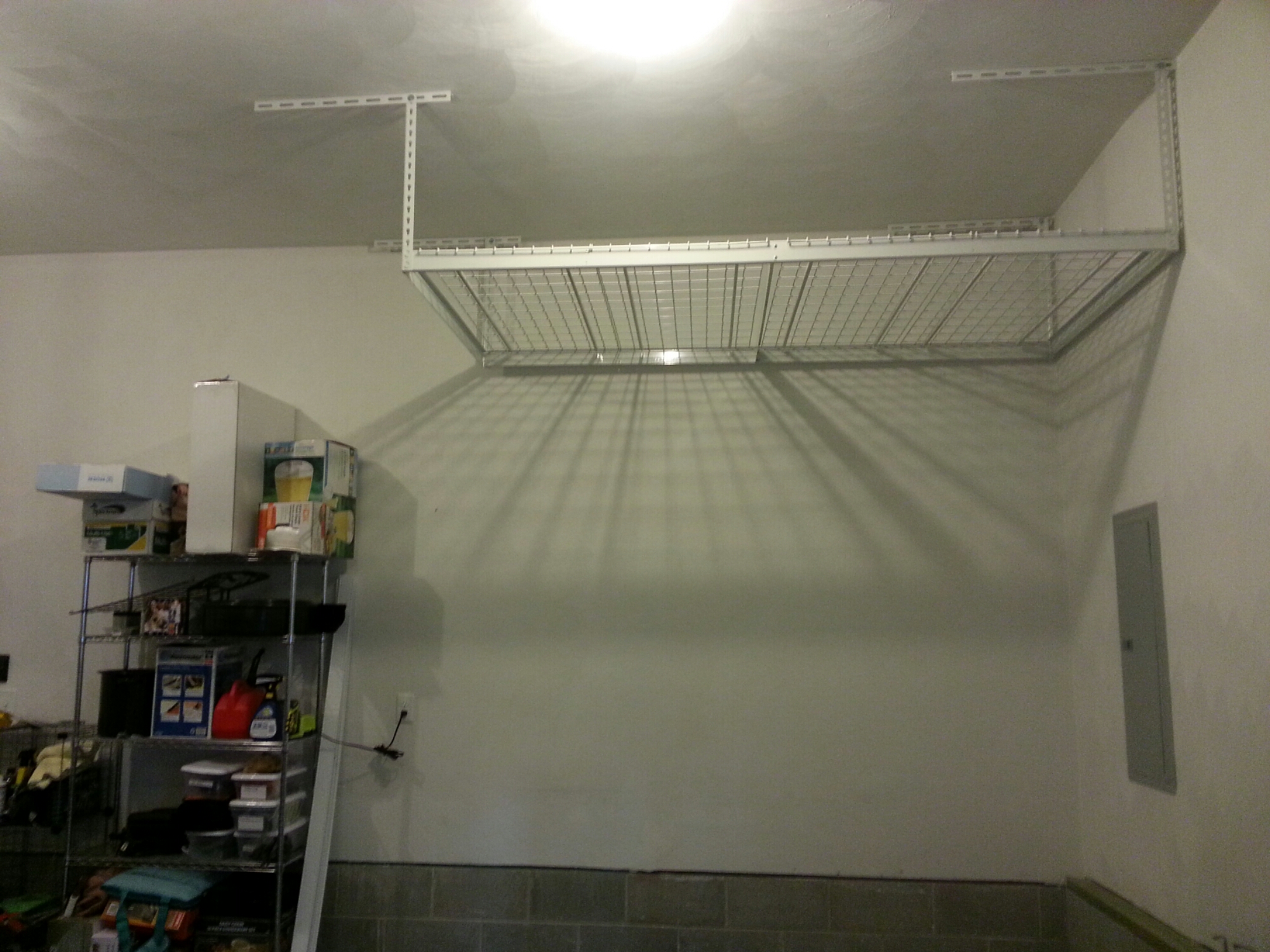My weekend project Finally completed my overhead storage system for the garage. Before: After: It took a while, but yay for more storage. Now I need to put some stuff up there. Share this: Click to share on X (Opens in new window) X Click to share on Facebook (Opens in new window) Facebook Click to share on Reddit (Opens in new window) Reddit Like Loading... Related Leave a comment Cancel reply Δ